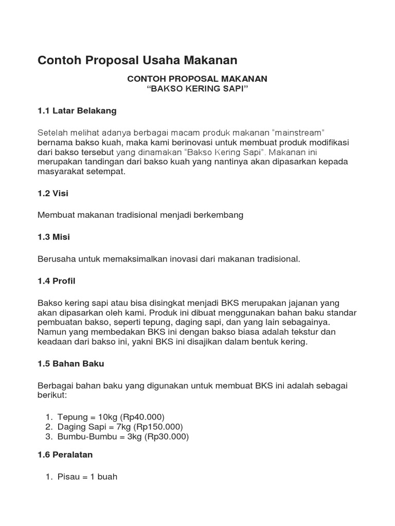 Contoh proposal usaha termasuk ke dalam jenis proposal non formal. Contoh proposal usaha tentunya dapat memberikan gambaran perencanaan sebelum memulai sebuah bisnis, sekaligus dapat meyakinkan calon investor. Berdasarkan fungsinya proposal ini dibagi menjadi dua proposal untuk memulai bisnis, dan proposal untuk menjual produk/mendapatkan proyek dari suatu organisasi. Kerangka contoh proposal kerjasama usaha. Dalam dunia bisnis ada yang disebut dengan proposal. Untuk sebagai inspirasi usaha makanan apa saja yang bisa anda jalakan dibawah ini ada contoh proposal usaha makanan yang bisa anda. A.pendahuluan latar belakang pada saat ini banyak orang yang ingin membuat acara atau kegiatan secara x. Hal ini dikarenakan dalam proposal anda telah merinci berbagai aspek yang. Bisnis kuliner di indonesia memang masih sangat menarik dan memiliki banyak peminat, hal ini tentu saja tidak lepas dari kegemaran makan masyarakat. Oleh karena cakupan dunia usaha itu luas, penulisan dalam proposal usaha tidak harus terpaku pada suatu aturan yang sudah baku. Contoh format proposal usaha makanan. Dari masakan padang, sunda, jawa, dan lainnya. Contoh proposal usaha kuliner, cafe, kerajinan, warung kopi dll.