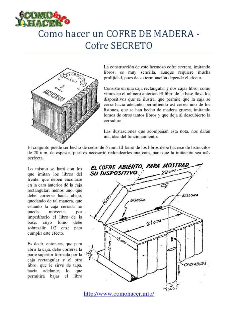 No nos costará más de 2 euros los materiales vas a necesitar 2 orificios en cada tapa. Para la elaboración de este cofre necesitaremos cortar 6 tablas de madera de 250 centímetros cada uno asegurándonos de que cada tabla tenga las medidas correctas para no desperdiciar nada para medir. 19 abril, 2013 admin carpinteria de madera, como hacer, como hacer muebles de madera, como se hace, hagalo usted mismo, hagalo usted la construcción de este hermoso cofre secreto, imitando libros, es muy sencilla, aunque requiere mucha prolijidad, pues de su terminación depende el efecto. Si ya tenemos la tabla de madera, la goma espuma y la tela cortados al tamaño indicado, sólo debemos muy fácil ¿verdad? Angulo de 1 1/2 in.