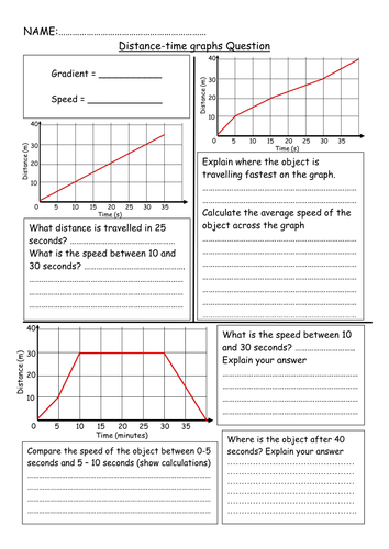Some of the worksheets for this concept are distance vs time graph work, mathematics linear 1ma0 distance time graphs, motion graphs, name block velocityacceleration work calculating, velocity time graph problems, topic 3 kinematics. Distance vs time graphs other contents: Some of the worksheets for this concept are distance vs time graph work, mathematics linear 1ma0 distance time graphs, motion graphs, work 2, level of challengeca6 a6 interpreting distancetime graphs. Have your say about what you just read! Time graph, part 1 describes how to read a velocity vs. Create a distance vs time graph illustrating her journey. The speed is changing by speeding up or slowing down. Part ii answers to the first 2 problems. Each slide provides the student worksheet, followed by an identical worksheet that includes the answers for each worksheet provides three distance, rate, and time problems for students to solve. Consulting the graph shown in the figure, find the object's average velocity over the time interval from 0 to 1 second. Using the graph to determine displacement, distance, average velocity, average speed, instantaneous velocity, and well i told you the key is that the average slope between any two points on this line so i can pick these two if i want, the average slope between these. A worksheet that requires the pupils to construct their own graphs of motion and answers questions about them. Graph a graph b graph c graph d graph e the motion of these objects could also be described using words.